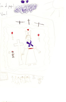 Me han encargado que diseñe una capilla , los dibujos para una capilla de un hospital infantil, y más concretamente el diseño del Sagrario , si Jesús de esconde tras la Eucaristía no puede sentirse ofendido si ,en su casa, en el hospital entra un niño disfrazado de Spiderman , así que he pensado en poner algún lugar con disfraces . Pienso que como Jesús está bajo la apariencia de pan y vino , pero es completamente ÉL pues cada uno puede aparecer a su presencia con la apariencia que le guste , y a los niños les gusta ser Super héroes , los niños enfermos además lo son porque luchan contra la enfermedad y pase lo que pase estoy segura de que Dios les hace ganar.